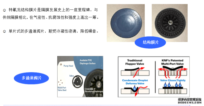 多通道特氟龍閥片特氟龍泵頭 答:一個安裝在偏心曲軸上的彈性膜片(見圖)在電機(jī)的帶動下做上下往復(fù)運(yùn)動,使得腔體發(fā)生形變,實現(xiàn)介質(zhì)的抽入和排出。泵在轉(zhuǎn)移,疏散及壓縮的過程完全無油,實現(xiàn)無污染傳輸。
